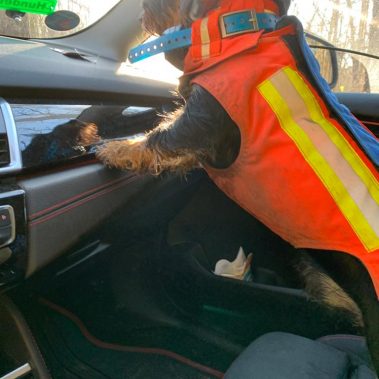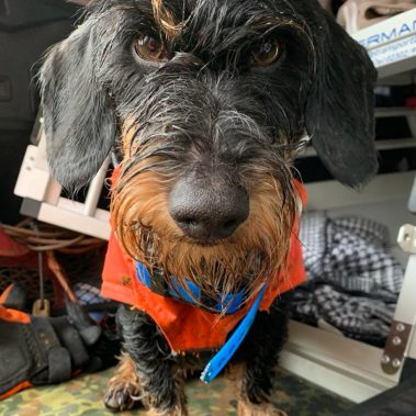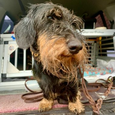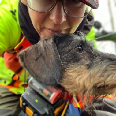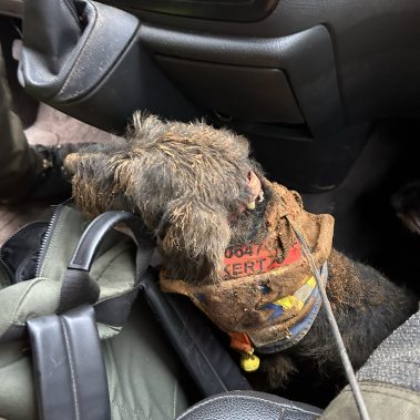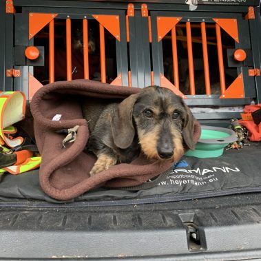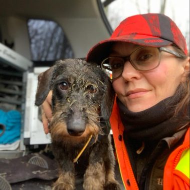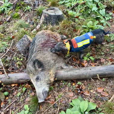 Anton von der Magna Kybele FCI nach erfolgreicher Arbeit an der Sau