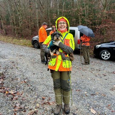 Loisl von Bretano nach erfolgreicher Arbeit an der Sau